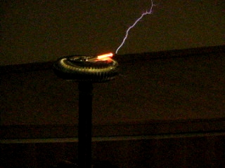 coil, powered by 10 kV, 30 mA neon transformer...The high voltages