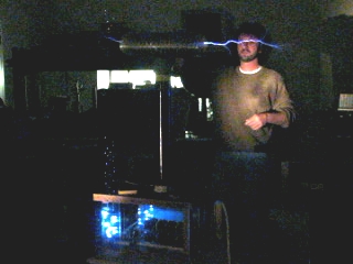 The blue lights at the bottom is from the multiple static spark gaps